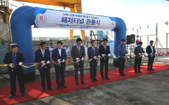▲진해~거제 주배관 제1공구 건설공사 해저터널 관통식이 열리고 있다.