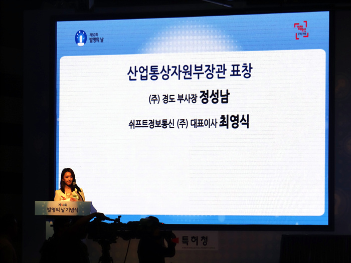 - 내용 : 2015년 05월 19일 코엑스에서 열린 제 50회 발명의 날 기념식 행사에서 경도그룹 정성남 부사장이 산업통상자원부장관 표창을 받았습니다. '발명 50년, 창조 한국을 열어갑니다.'라는 주제로 열린 오늘 기념식에는 최경환 국무총리 직무대행을 비롯해 발명, 특허 유관 단체 등 600여명이 참석했습니다.